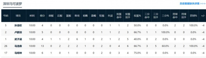 深圳:马浩森13分2篮板2助攻。