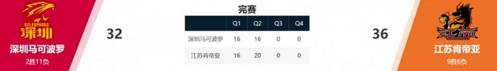 深圳32-36不敌江苏。