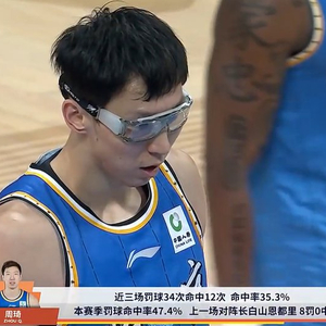 本赛季罚球命中率47.4%,上一场对阵吉林8罚0中。