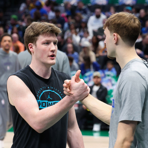 直播吧3月28日讯 独行侠100-93战胜开拓者。独行侠状元弗拉格接受媒体采访。弗拉格与大学同学克尼佩尔本赛季一直保持联系,但有一个话题他们从不提及。