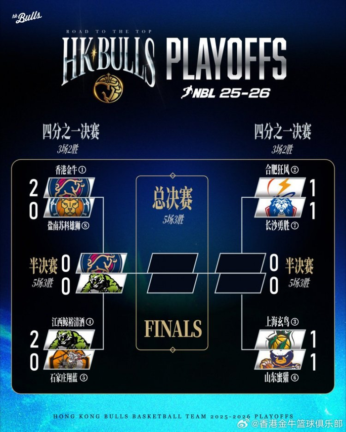 季后赛对阵表更新!接下来球队将在半决赛中对阵江西鲸裕清酒!