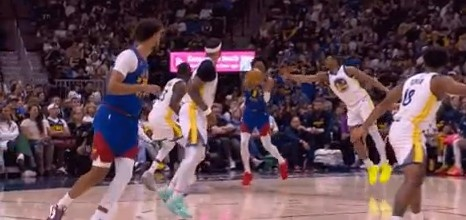 寸土必争!双方拼抢出界吹争球 勇士挑战成功拿回球权