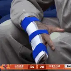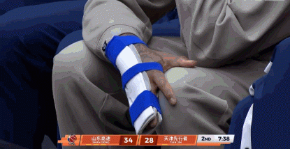 球队需要你啊!克里斯右手绑着厚厚的固定板在场边观战