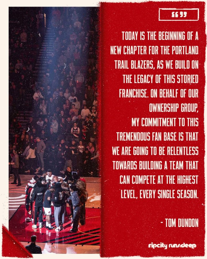 直播吧04月01日讯 开拓者官方宣布,经NBA董事会批准,汤姆·邓顿所领导的财团已完成对球队多数股权的收购。