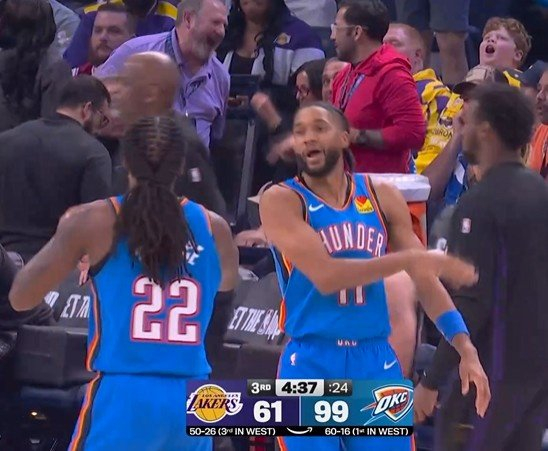 狂轰滥炸!以赛亚·乔帽子戏法三分3连击 雷霆领先湖人38分
