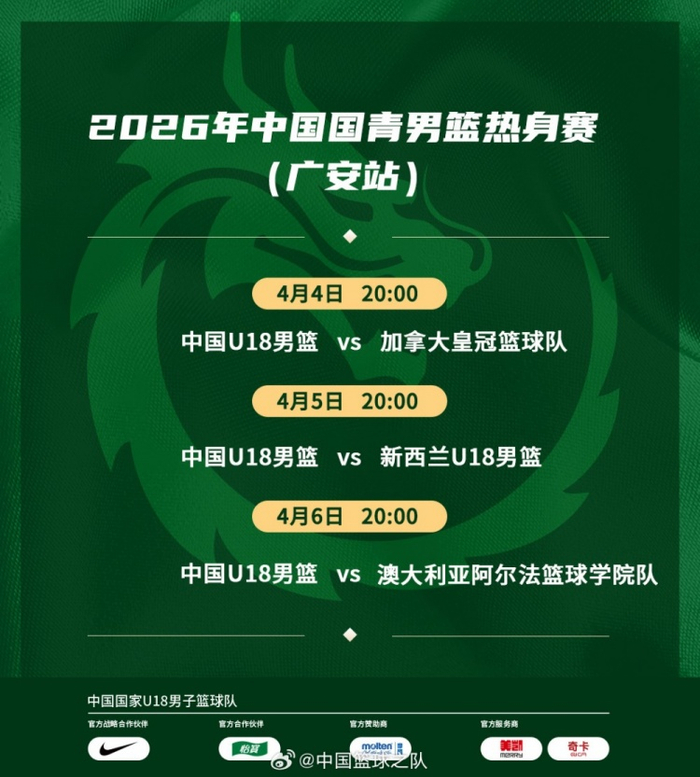 直播吧4月3日讯 中国篮球之队发文公布了中国U17、U18男篮近期的比赛赛程。
