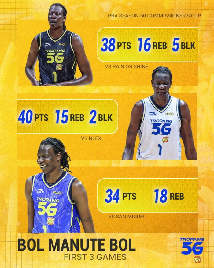 目前,波尔·波尔已经代表球队出场了三场比赛,场均轰下37.3分16.3篮板2.3封盖。三场比赛分别拿到38分16板5封盖,40分15板2封盖,34分18板。