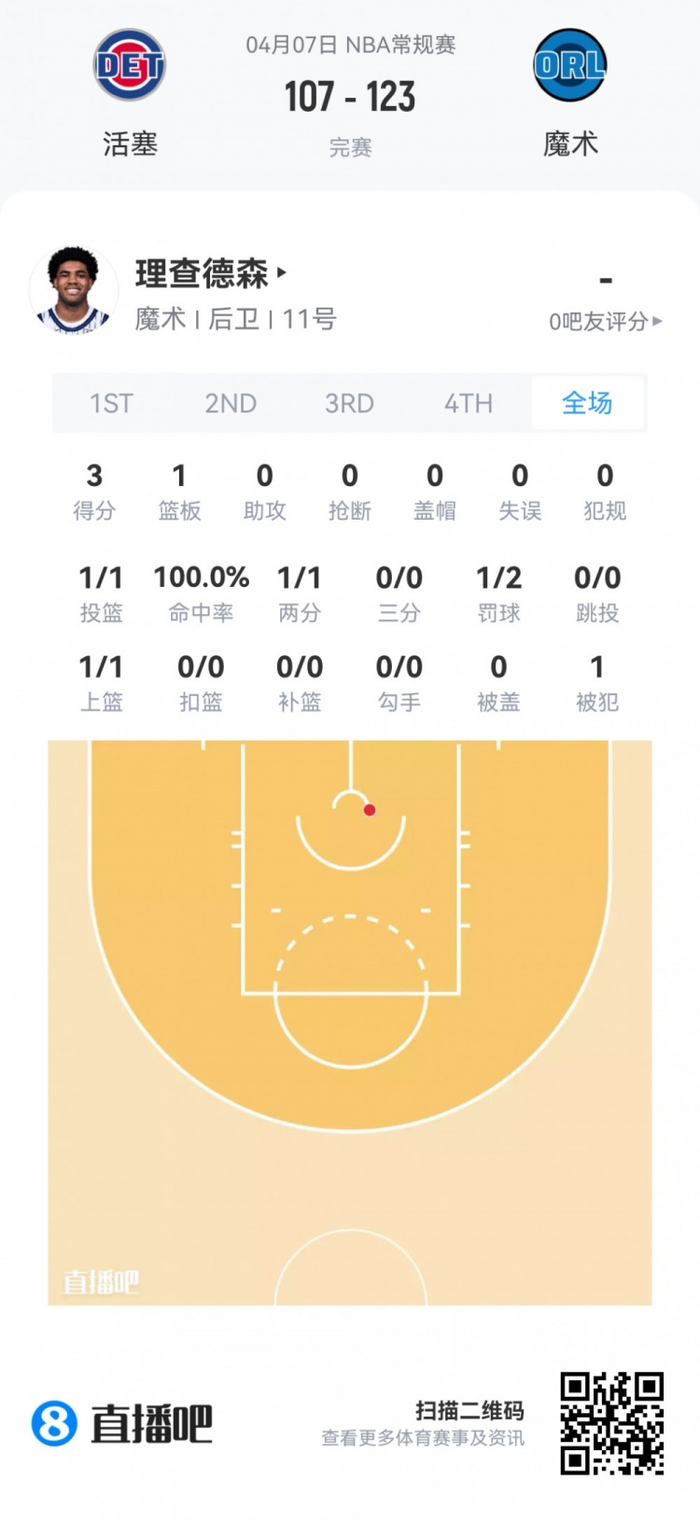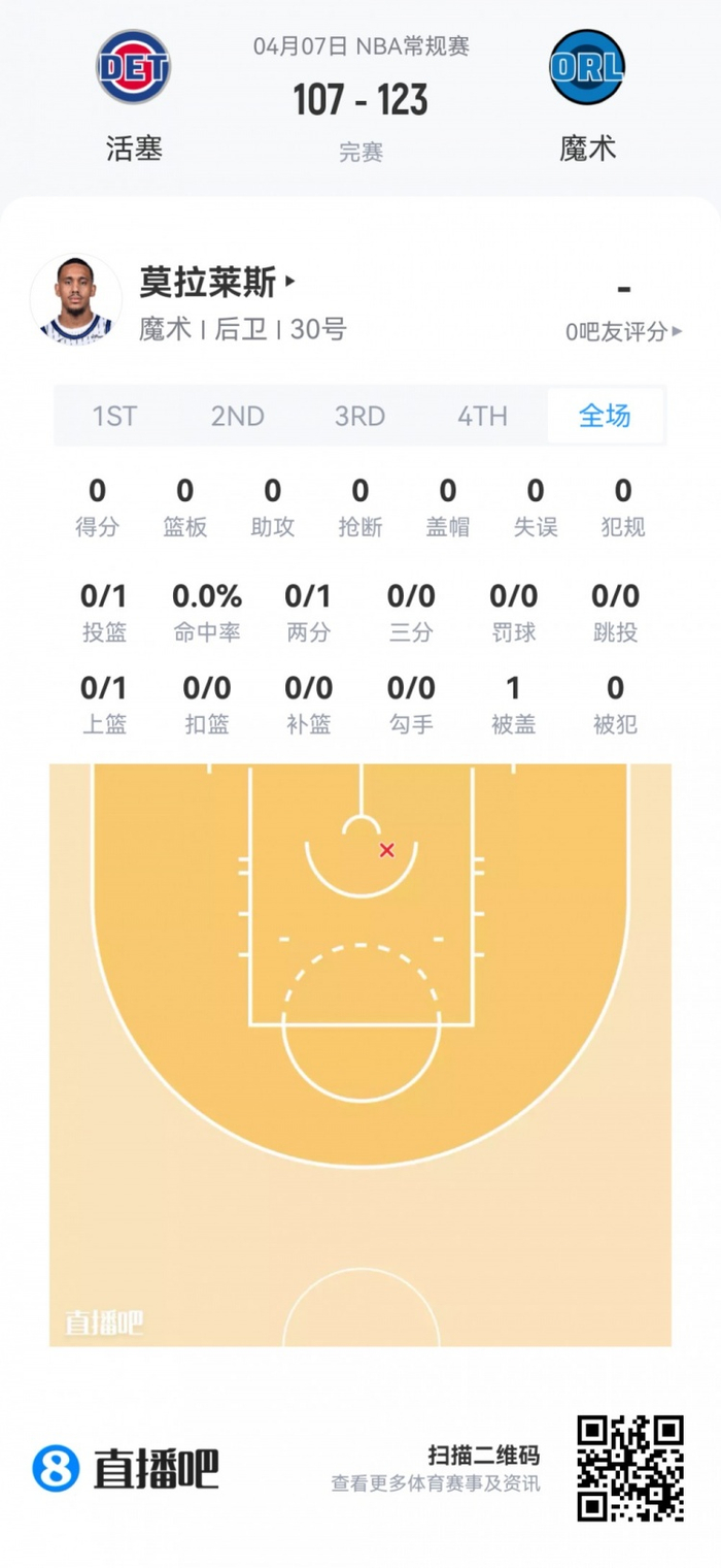 魔术落选秀奥拉莱斯 登场1.8分钟