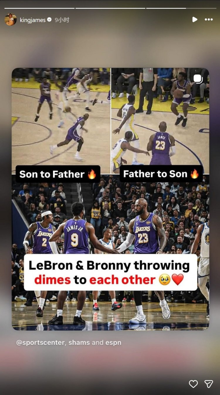 赛后,詹姆斯在INS上转发了NBA官方和ESPN等媒体晒出的相关动态。