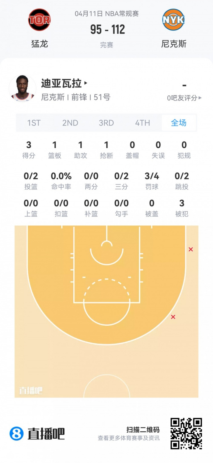 尼克斯次轮51号秀穆罕默德·迪亚瓦拉 登场10.7分钟