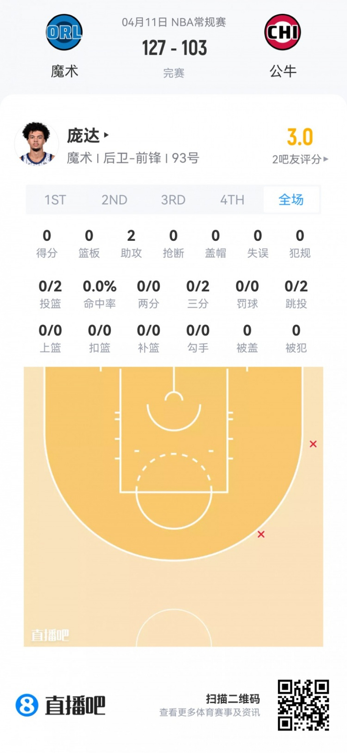 魔术次轮32号秀诺厄·庞达 登场7.5分钟