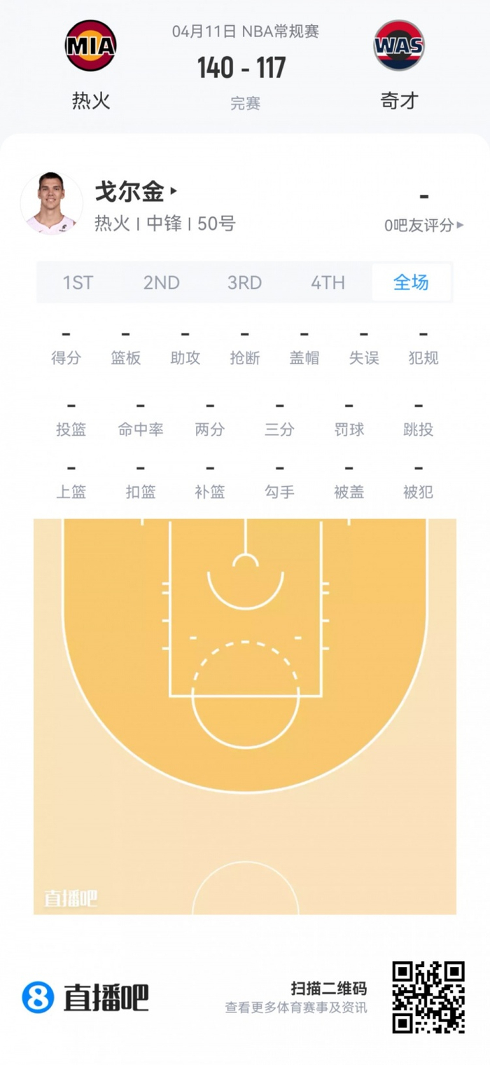 热火落选秀戈尔金 登场1.4分钟