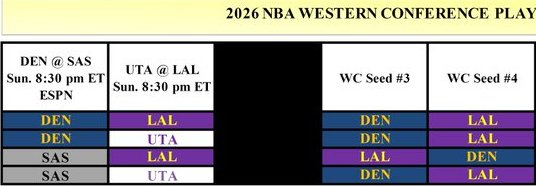 如果掘金输球,湖人的输赢便决定了排位,湖人赢去打森林狼,掘金去打火箭;湖人输自己去打火箭,送掘金去打森林狼。