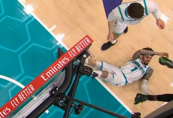 上半场,黄蜂主将拉梅洛·鲍尔用手扒了热火球星阿德巴约脚后跟致其倒地受伤,后者返回更衣室,本场回归成疑!