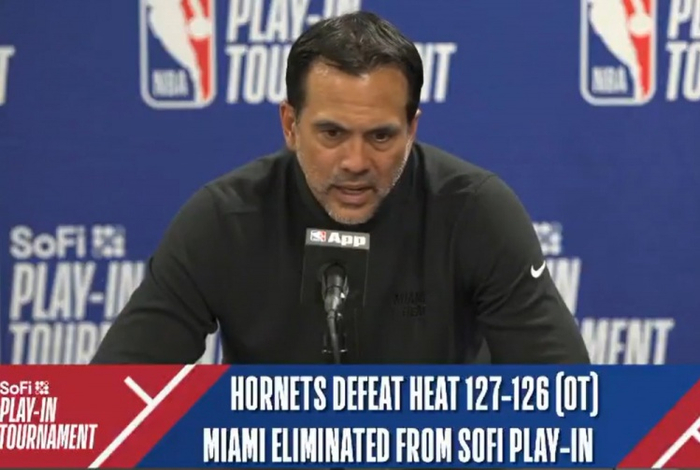 直播吧4月15日讯 NBA附加赛,热火126-127不敌黄蜂。赛后主帅斯波尔斯特拉接受了采访。