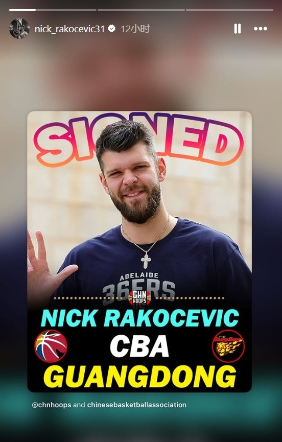 自宣!拉科塞维奇社媒转发自己已签约广东男篮的报道