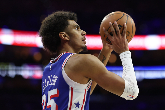 杰伦·布朗投篮下落时肘到巴洛面部 裁判回看后没有判罚