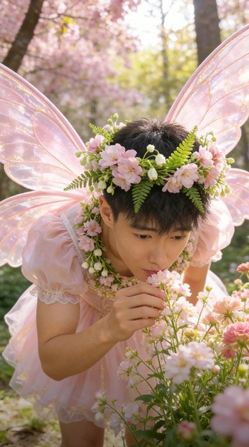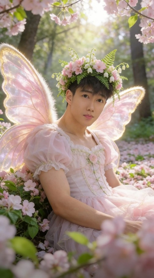 女装大佬?俞泽辰晒李虎翼的AI换装照片:春日樱花奇幻风