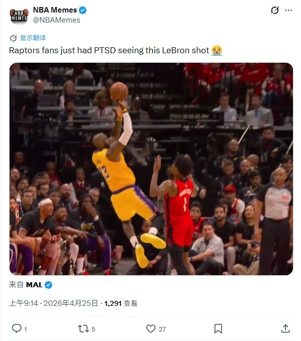 当年同一位置绝杀猛龙!美媒转发詹姆斯45度打板:猛龙球迷PTSD了