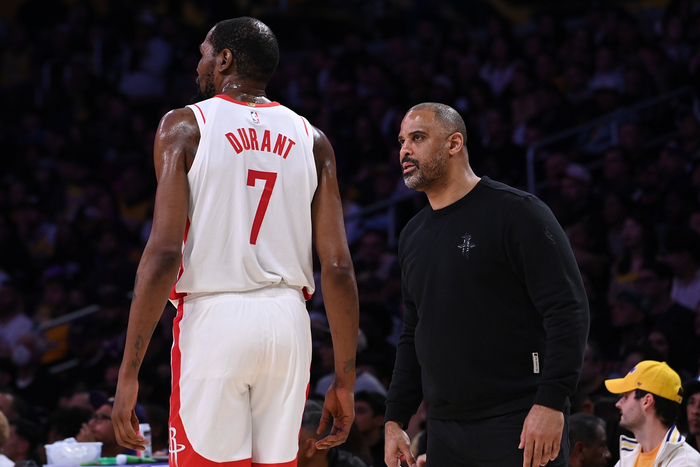 乌度卡:杜兰特今晚没出现在球队替补席 是因为在接受治疗