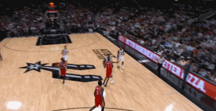 这一幕出现在第四节6分48秒。卡瓦伊-莱昂纳德持球推进到三分线外,和拉马库斯-阿尔德里奇做了个掩护后,突然折向中路。此时,特雷沃-阿里扎被大卫-李带走,将防莱昂纳德的任务交给了哈登。