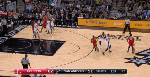 好在马刺及时做出调整,第二节开始注重切断哈登的传球路线,对持球的他施压,更为关键的是在哈登突破时,内线会上提到禁区外延误。这收效不错,尽管前三节战罢,哈登仍维持高效,但二、三节也“仅得”17分而已。