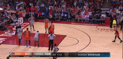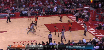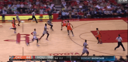 进攻端哈登也有佳作奉献。雷霆仍安排安德烈-罗伯森单防他,但经过本季3次交手,哈登对此早已习惯,于是便有了首节强行超车罗伯森,在史蒂文-亚当斯封堵下单手爆扣的精彩表演。知名记者蒂姆-麦克马洪调侃说:“没人会认为哈登是一名飞天纵地的球员,但他刚隔扣了亚当斯。这一记左手爆扣让丰田中心球迷陷入癫狂。”