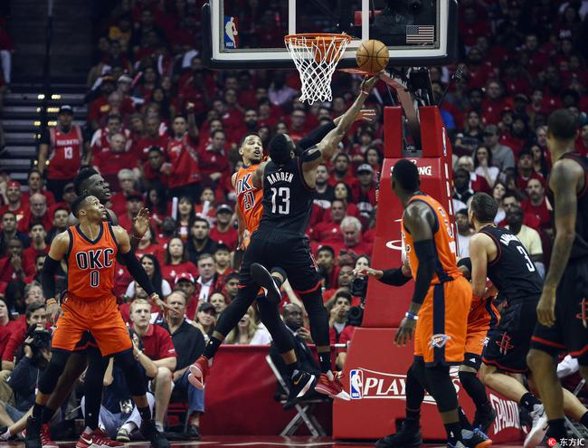 一个数据,火箭在今天的比赛里有62分来自于禁区,对手雷霆,只有38分。