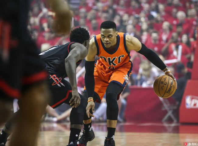 防守端,他对威少更是寸步不离,贴身的紧逼让这位准MVP表现的大为光火。