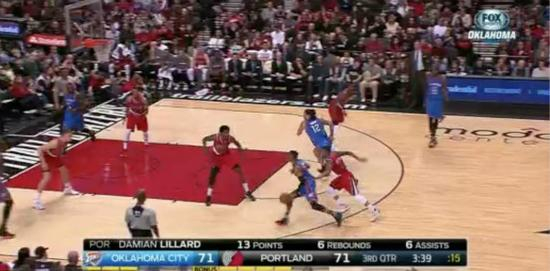 如果对方主帅倾尽全力防库里和格林的挡拆,勇士可以派杜兰特去格林的位置为库里掩护,让他来负责4打3的持球。如果库里需要休息,杜兰特可以接管比 赛。和看上去一样可怕的是,勇士除了库里挡拆魔法外的进攻是极其简单粗暴的:一人持球,一群射手空切和为彼此做墙,传球手最终找到空位球员。