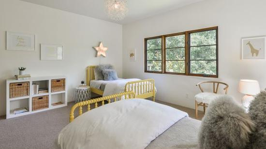 这栋房子的主卧里面有两个阳台,而且我们还看到了库里的大女儿莱莉的卧室,非常整洁。