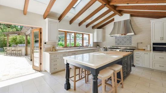 这栋房子的厨房被库里一家重新设计过,而且通向庭院,光亮度非常充足。