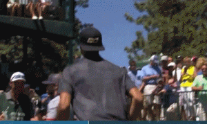 在完成一次挥杆动作后,库里居然从嘴里拿出了他标志性的牙套,然后把他扔向观众席。不过他随即笑着和那位观众打招呼。
