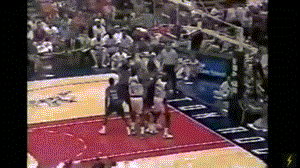 不过对乔丹,他可是够义气的。当看到乔丹被掀翻在地,他二话不说,冲着犯规球员就是一拳,可谓是乔丹的哥们儿兼保镖。