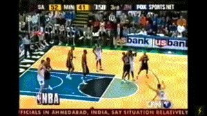在马刺对阵森林狼的比赛第三节中,当时效力森林狼的斯泽比亚克在三分线外试图跳投,此时,鲍文从远处腾空而起,做出一个标准的中国武术动作——飞踹,冲着斯泽比亚克的脸就是一脚,斯泽比亚克当即被踹倒在地。