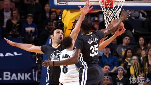 其实,这也并不能算奇怪。虽然杜兰特一直以来都是作为顶级得分手出现在人们的视野面前,但实际上,他也是一位非常出色的防守者。上赛季在雷霆,球队的内线有伊巴卡和亚当斯保护篮筐,杜兰特就承担起了封锁外线的责任,当他防守进攻球员的时候,对位球员的命中率只有38.5%,要比平均水准降低6.3个百分点,这一数据其实比最佳防守球员莱昂纳德都要出色。而在季后赛之中,当雷霆队开始祭出小个阵容的时候,杜兰特又成为了球队内线的护框者,他有着出色的臂展和非比寻常的运动能力,能够像凯文•加内特一般保护禁区。