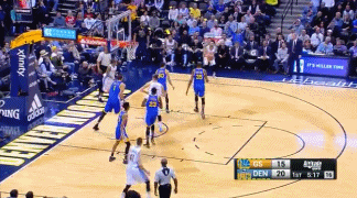 有几次,当掘金队在三分线外出现投篮空位之后,勇士队的球员还会象征性地上前伸手防一下。但有些时候,勇士队的球员直接放弃防守,并眼睁睁地站在那里看着掘金队三分命中。