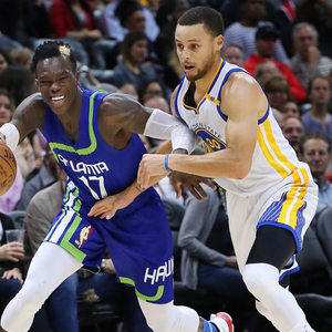 今天比赛开始之后,施劳德迅速进入状态,第一节就打爆库里,他独得19分,投进4个三分球,而且命中率非常高。上半场结束时,施劳德已经砍下23分,而库里只得到7分。