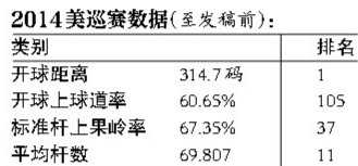 大满贯冠军:2011美国公开赛,2012、2014PGA锦标赛,2014英国公开赛
