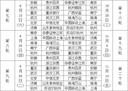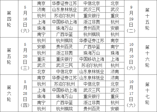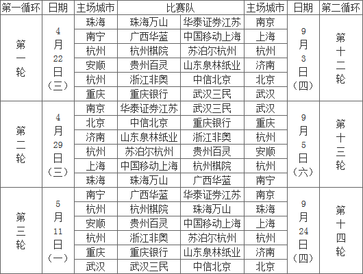 2015围甲日程:4月22日开赛 11月25日收官战