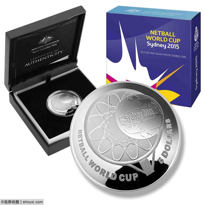 2015年篮网球世界杯在悉尼举行,共有32个国家参赛,最终东道主澳大利亚战胜新西兰,成功夺得本次赛事冠军,而近三届冠军也均被澳大利亚收入囊 中,2019年篮网球世界杯将移师英国利物浦举行。为了纪念2015年篮网球世界杯,澳大利亚发行量一款2015年悉尼篮网球世界杯纪念银币,此版面值5 元,发行价125澳币,1盎司999纯银打制,采用弧形精制技术,做工精美别致,最大发行量不超过5000枚。