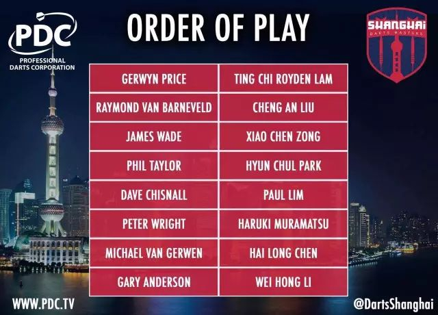 2017 世界职业飞镖上海大师赛 对阵表
