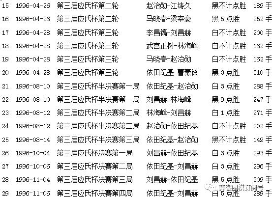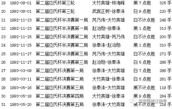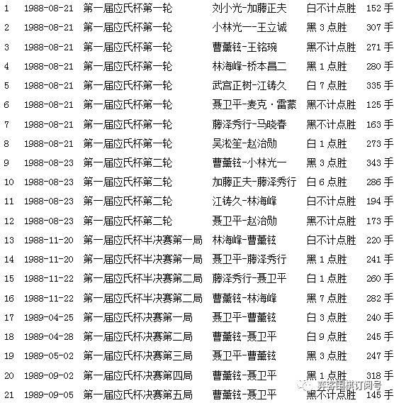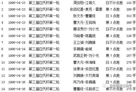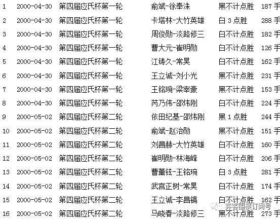 第一届届应氏杯赛果(前执黑)