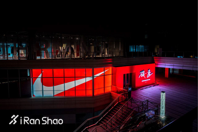 耐克的广告总给人一种“花小钱也能办大事”的感觉。近几年,耐克更是热衷搭建一个展厅或者一个实验室,不论是耐克的NRC跑步支线还是Nike F.C.足球支线,在刚过去的上海时装周上,耐克就搭建了一个实验室在会场的入口处。