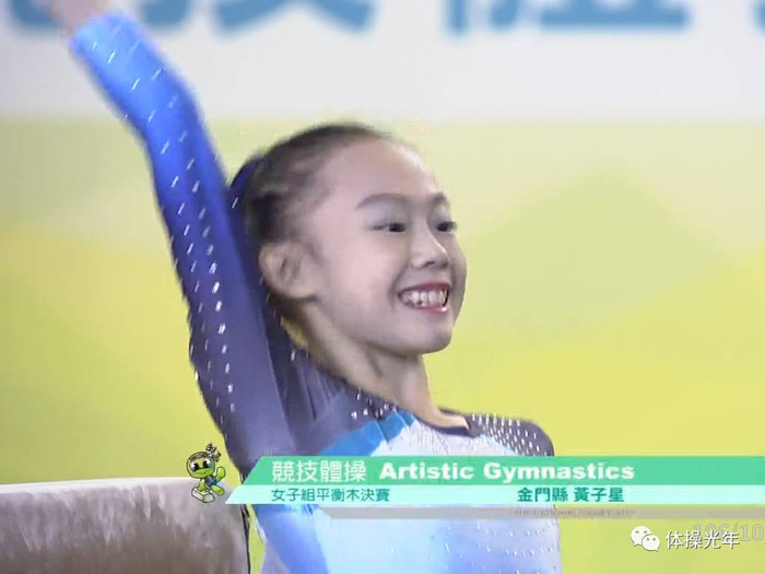 这几天国内外都没有什么主要赛事,小编下午无意中看到网上在直播台湾的“全运会”,于是围观了一下平自决赛,发现一个挺亮眼的04年小朋友,叫黄子星。04年的小孩子,居然和成年组混在一起比赛!再一看,小小年纪,自由操难度有4.9了,全场最高,平衡木上也有高举腿720,在台湾非常难得。动作质量呢,虽然也很值得抠,但已经非常不“中华队”了。动作储备放在大陆这个年龄段,也并不差。成套计划是屈二,前手前直360,后直720,后直900,高举腿720,立传1440。