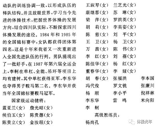 (金门体操队。右一是梁萍教练,前排中间是黄子星。)