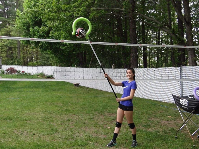 可以通过扣球的辅助器械,来让攻手体验最佳的击球点,长期练习,找到自己的球点,找到追球的感觉,就能打好三米线。