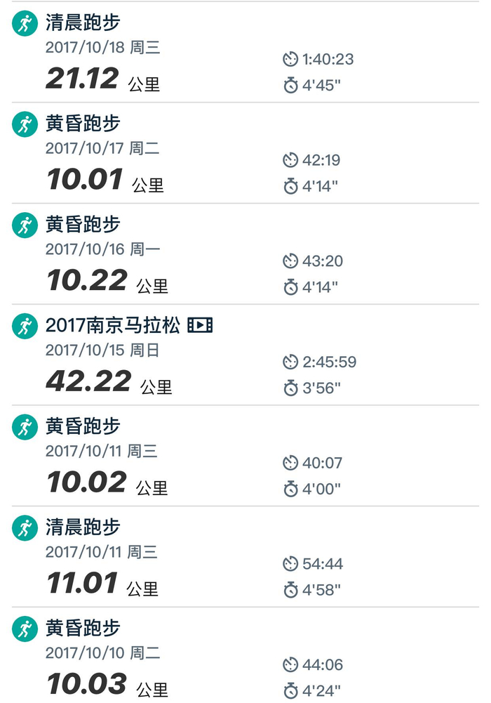 因为在10月份,我安排了两场全程马拉松比赛,分别是10月15日的南京马拉松和10月29日的石家庄马拉松。