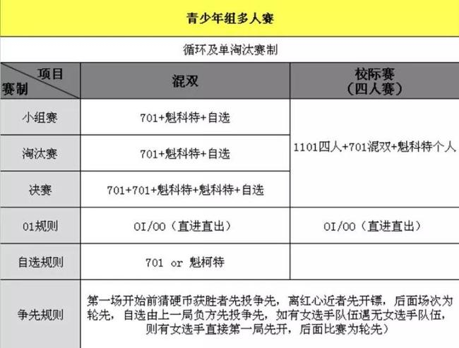 1、双打和四人团体(校际赛)自行组队,不得跨校组队;