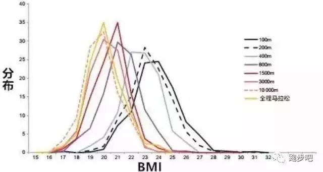 在对日本、肯尼亚两地的精英选手身体数据分析中得出,全马精英跑者的BMI普遍在17-20之间,其中男性精英跑者的BMI普遍在19±1的范围内,女性精英跑者的BMI还要更低一些,在19左右。若依此比率,以身高175cm的选手为例,马拉松跑者应在57公斤左右。以同样160cm高的女生来看,体重约为48公斤左右。